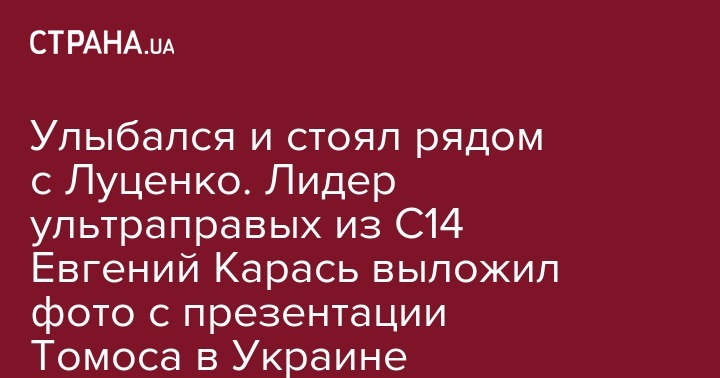 Лидер ультраправой организации С14 Евгений Карась выложил фото со своего похода на Рождественскую литургию в Софийском соборе Киева, когда там развернули и закрепили свиток с черновиком Томоса.