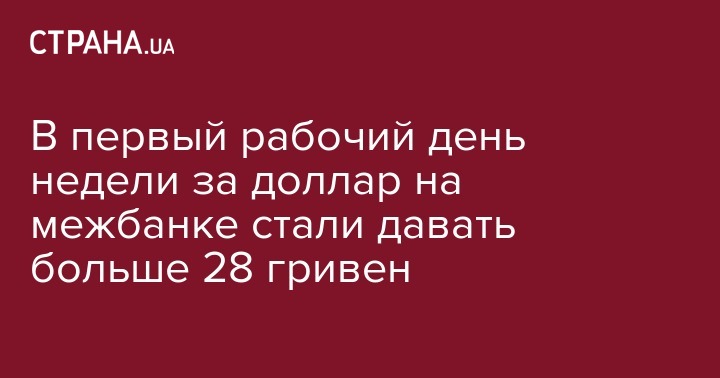 Курс гривни на межбанковском валютном рынке во вторник снизился до 28,04 грн/$1 с 27,795 грн/$1 в предыдущий рабочий день, сообщили агентству "Интерфакс-Украина" дилеры коммерческих банков.
