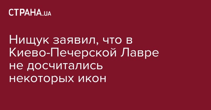 Министр культуры Украины Евгений Нищук заявил, что во время инвентаризации Киево-Печерской лавры обнаружили пропажу нескольких ценных икон. Об этом он сообщил  в эфире телеканала "Прямой".