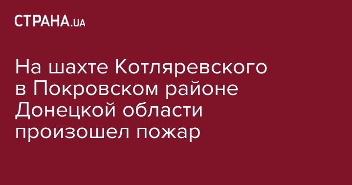На шахте Котляревского в Покровском районе Донецкой области произошел пожар
