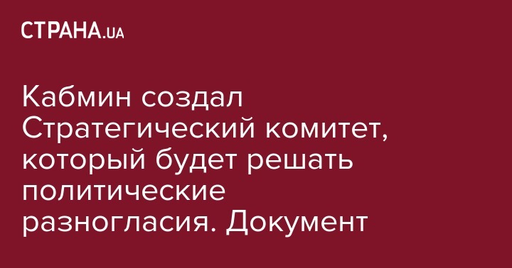 Кабмин создал Стратегический комитет, который будет решать политические разногласия. Документ