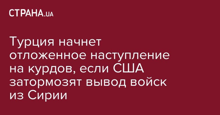 Запланированная военная операция против курдских бойцов на севере Сирии, которую власти Турции отложили, продолжится в случае задержки вывода войск США из региона. Об этом заявил турецкий министр иностранных дел Мевлют Чавушоглу. Его цитирует DPA-International.