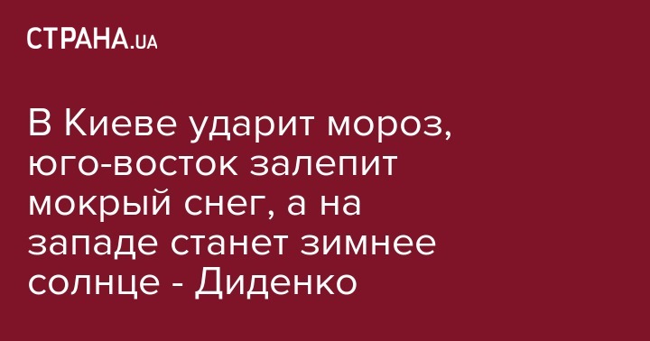 На западе и севере осадков не предвидится, только в Сумской области возможен снег, ночью -7... -15, днем -5... -12 градусов. На юге, востоке и в большинстве центральных областей Украины (кроме Винницкой - здесь до -8 градусов) будет тепло, от 2 градусов мороза до 4 градусов тепла, в Крыму +4... +8 градусов. Однако, по словам Диденко, это "термическое удовольствие" будет неприятно компенсировать сложная погода. В частности, прогнозируется мокрый снег и дождь, умеренные осадки могут переходить в сильные, ожидается штормовой ветер, налипание мокрого снега, гололед, на дорогах гололедица.