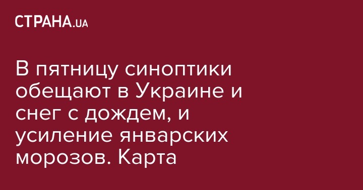 В пятницу синоптики обещают в Украине и снег с дождем, и усиление январских морозов. Карта