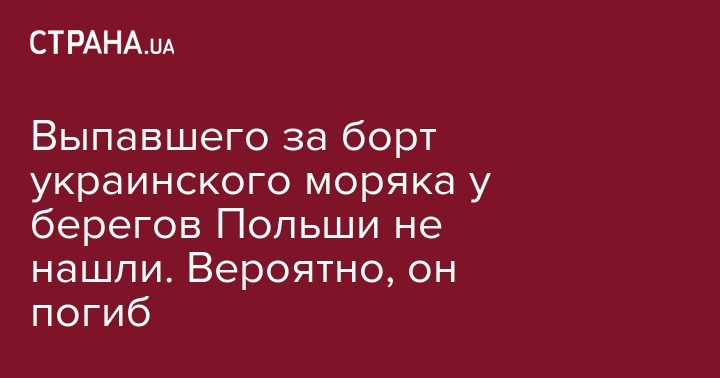Поисково-спасательная операция в Балтийском море у берегов Польши по поиску выпавшего за борт украинского моряка длилась более пяти часов, но результатов не принесла. Об этом сообщает "Польское радио".