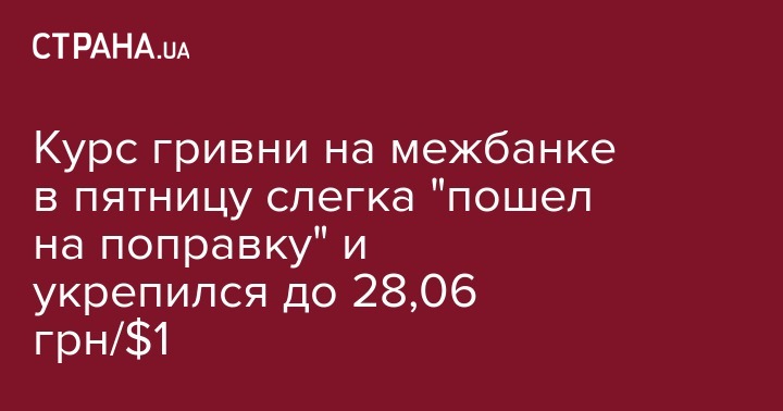Курс гривни на межбанке в пятницу слегка "пошел на поправку" и укрепился до 28,06 грн/$1
