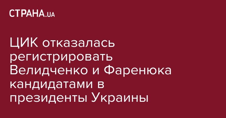 Сообщается, что ЦИК на заседании 10 января решила не регистрировать терпонольского врача Виктора Фаренюка кандидатом в президенты, так как он не внес необходимые 2,5 млн гривен залога, отказался от публикации данных и не предоставил лишь часть необходимых документов. Между тем, он полагает, что отказ Избиркома - нарушение его конституционных прав.