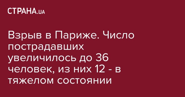 Взрыв в Париже. Число пострадавших увеличилось до 36 человек, из них 12 - в тяжелом состоянии