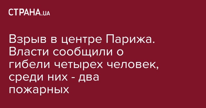 Сегодня, 12 января, четыре человека погибли в результате взрыва в пекарне в центре Парижа. Среди них - двое пожарных и двое местных жителей. Об этом заявили местные власти.