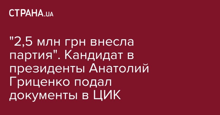 "2,5 млн грн внесла партия". Кандидат в президенты Анатолий Гриценко подал документы в ЦИК