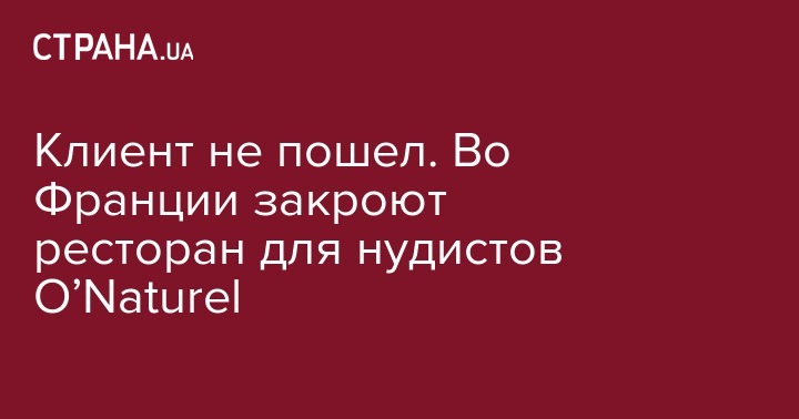 В Париже закроют первый в столице ресторан для нудистов O’Naturel.  Заведение закрывается из-за нехватки посетителей, передает RG.