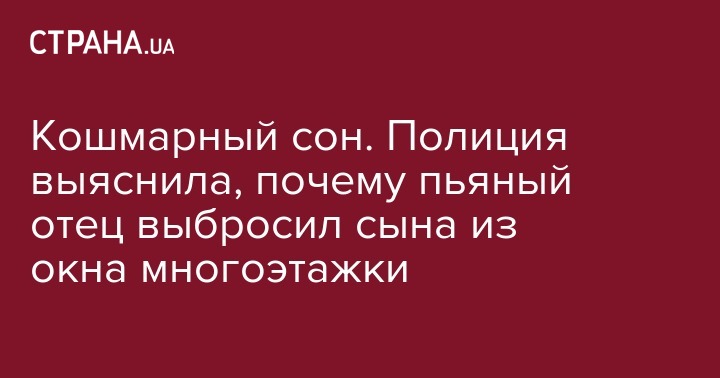 Полицейские Чугуева Харьковской области поделились версией, по которой пьяный мужчина выбросил из окна четвертого этажа собственного сына. Об этом написал заместитель главы Нацполиции Украины Вячеслав Аброськин в Facebook.