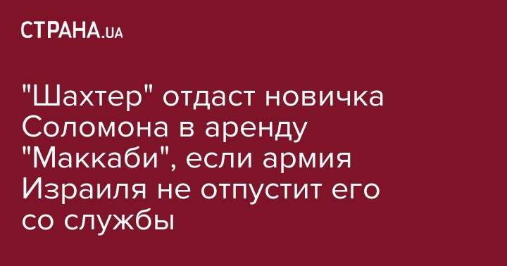 Во время переговоров "Шахтера" о трансфере полузащитника "Маккаби" Манора Соломона был поднят вопрос касательно службы 19-летнего игрока в Армии обороны Израиля. Об этом сообщает one.co.il.