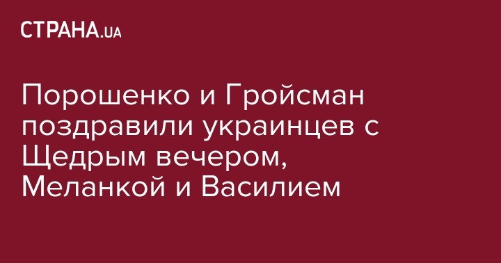 Порошенко и Гройсман поздравили украинцев с Щедрым вечером, Меланкой и Василием
