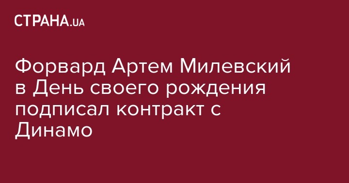 Форвард Артем Милевский в День своего рождения подписал контракт с Динамо