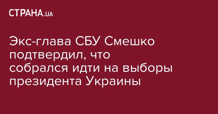Бывший глава Службы безопасности Украины (СБУ) Игорь Смешко заявил, что собрался идти на выборы президента Украины, подтвердив информацию "Страны" о своем выдвижении в кандидаты.