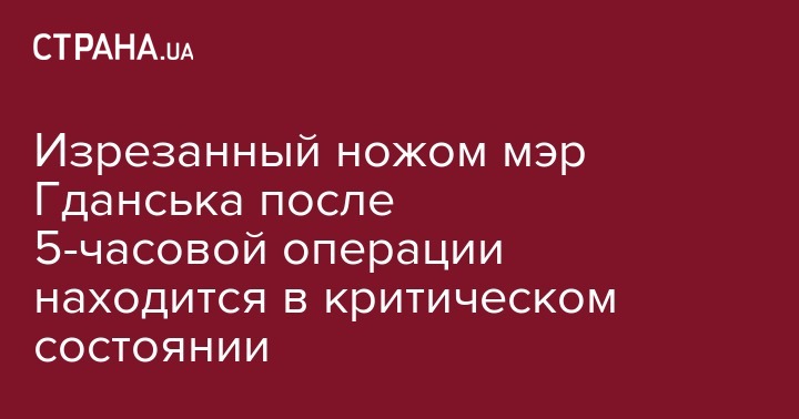 "Мэр жив, хотя его состояние очень, очень тяжелое. Операция длилась пять часов. Пришлось переливать много крови. Раны и повреждения были очень тяжелые: серьезная травма сердца, повреждение диафрагмы, раны органов внутри брюшной полости. Ближайшие часы все решат", - сказал Стефаняк.