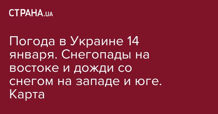 Погода в Украине 14 января. Снегопады на востоке и дожди со снегом на западе и юге. Карта