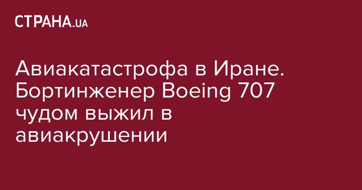 Бортинженер, который находился на борту потерпевшего в понедельник, 14 января, катастрофу в Иране Boeing 707, единственный сумел выбраться живым из самолета. Об этом сообщает ТАСС со ссылкой на иранское агентство Fars.