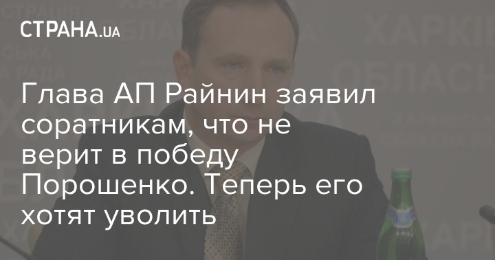 Глава АП Райнин заявил соратникам, что не верит в победу Порошенко. Теперь его хотят уволить
