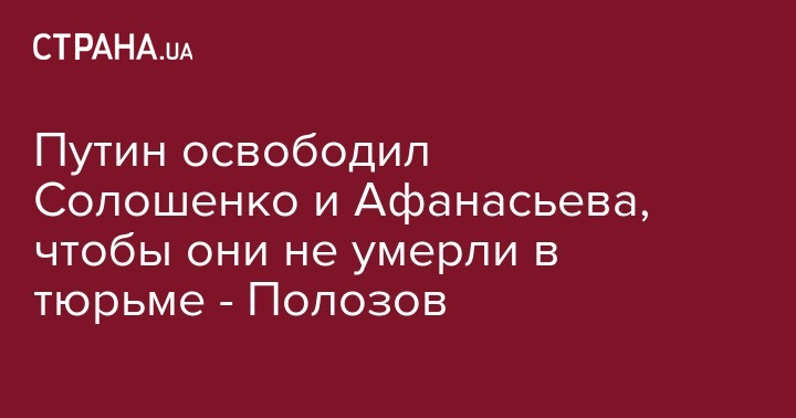 Путин освободил Солошенко и Афанасьева, чтобы они не умерли в тюрьме - Полозов
