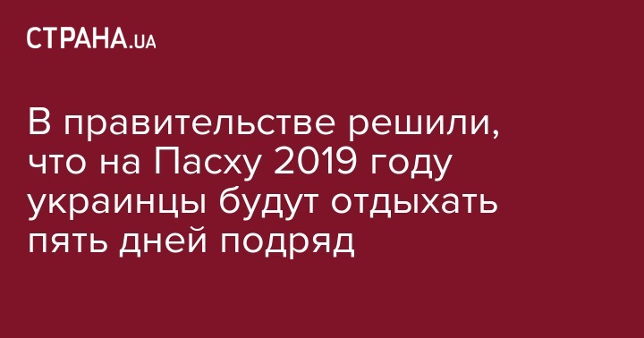 В правительстве решили, что на Пасху 2019 году украинцы будут отдыхать пять дней подряд