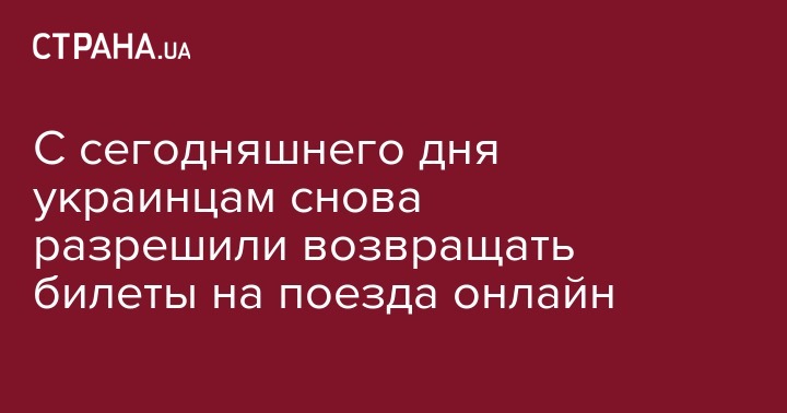 С сегодняшнего дня украинцам снова разрешили возвращать билеты на поезда онлайн