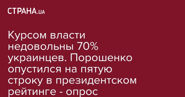 Курсом власти недовольны 70% украинцев. Порошенко опустился на пятую строку в президентском рейтинге - опрос