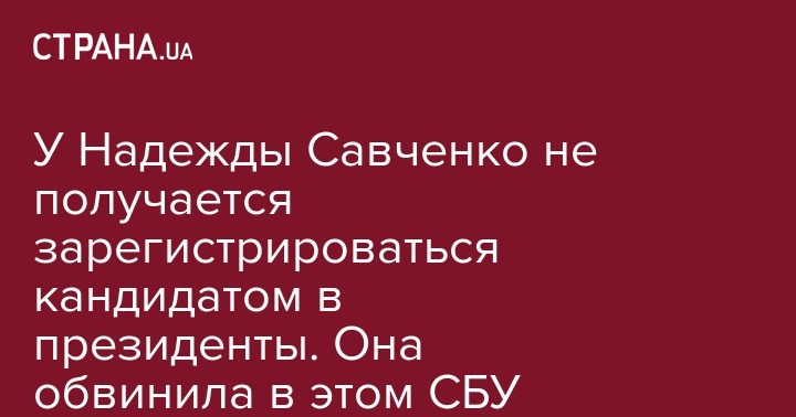 У Надежды Савченко не получается зарегистрироваться кандидатом в президенты. Она обвинила в этом СБУ