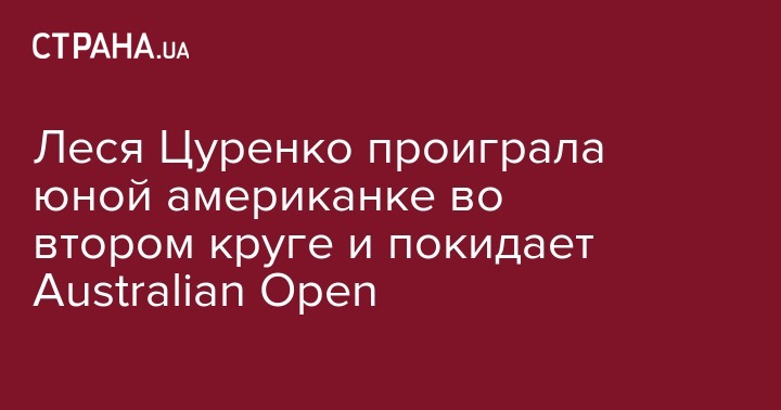 Украинская теннисистка Леся Цуренко проиграла во втором круге Открытого чемпионата Австралии Australian Open самой молодой представительнице топ-100 мирового рейтинга, 17-летней американке Аманде Анисимовой (87 строчка в рейтинге WTA - Прим.Ред.) и покидает престижный турнир серии "Большого шлема".