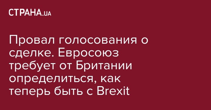 Первым же, кто отреагировал на итоги голосования, был президент Европейского совета Дональд Туск. "Если соглашение невозможно, и никто не хочет Brexit без договора, то кто тогда найдет мужество сказать, каким является единственное положительное решение", - написал он в Twitter. Очевидно, Туск намекает на решение, чтоб Великобритания осталась в составе ЕС.