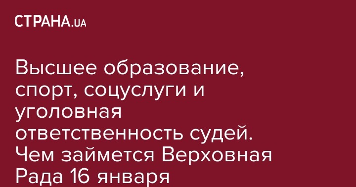 Высшее образование, спорт, соцуслуги и уголовная ответственность судей. Чем займется Верховная Рада 16 января
