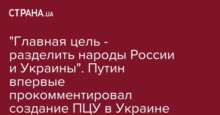 Президент России Владимир Путин считает, что главной целью создания поместной православной церкви Украины является разделение народов России и Украины. Об этом говорится на сайте Кремля.