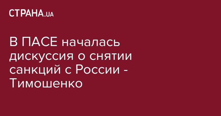 "Я бы хотела обратить внимание на то, что сейчас происходит в ПАСЕ дискуссия вокруг того, снимут ли с России санкции в отношении принятия участия российской делегации в работе ПАСЕ. И Россия сейчас прилагает очень большие усилия для того, чтобы найти аргументы, чтобы с нее сняли первую санкцию, чтобы их вернули в ПАСЕ как полноценных участников ассамблеи. Но я очень верю в то, что в ПАСЕ хватит тех фракций, тех представителей, тех сил, которые представляют различные страны Европы для того, чтобы не дать снять одну санкцию с России до тех пор, пока не будут освобождены территории Украины, и не будет восстановлен наш государственная граница, и мир, и спокойствие на нашей земле", - заявила Юлия Тимошенко