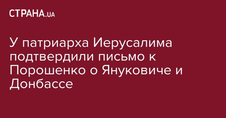 У патриарха Иерусалима подтвердили письмо к Порошенко о Януковиче и Донбассе