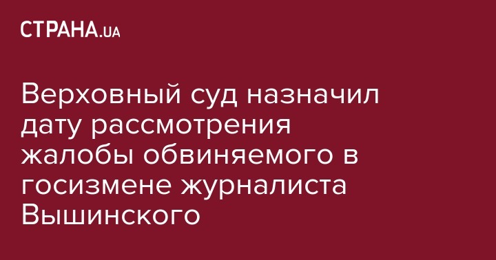 Кассационный уголовный суд Верховного суда Украины 23 января рассмотрит жалобу подозреваемого в государственной измене руководителя "РИА Новости-Украина" Кирилла Вышинского на незаконность его задержания в мае 2018 года.