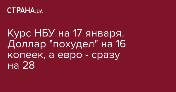 Курс НБУ на 17 января. Доллар "похудел" на 16 копеек, а евро - сразу на 28