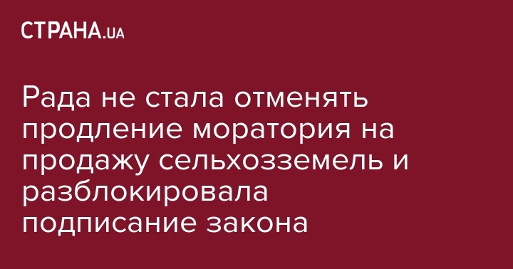 Рада не стала отменять продление моратория на продажу сельхозземель и разблокировала подписание закона