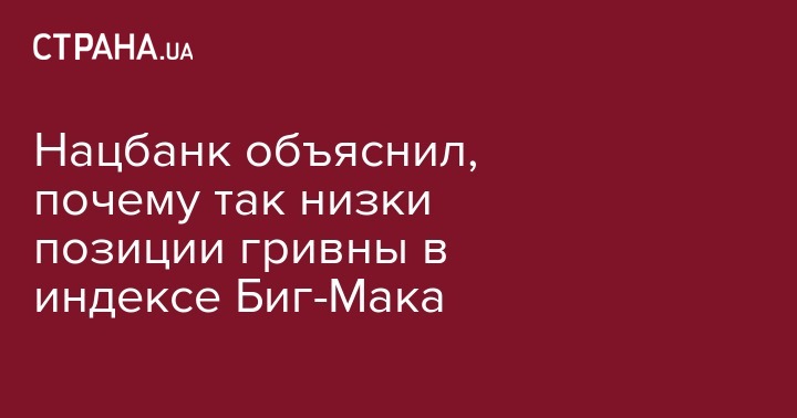 Нацбанк объяснил, почему так низки позиции гривны в индексе Биг-Мака