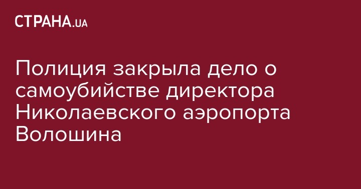 Уголовное производство по факту гибели исполняющего обязанности директора международного аэропорта "Николаев" Владислава Волошина 18 марта 2018 года, закрыто. Об этом со ссылкой на пресс-службу полиции Николаевской области пишут "Украинские новости".