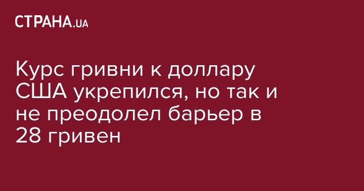 Котировки гривни к окончанию торгов составили 28-28,025 грн/$1.