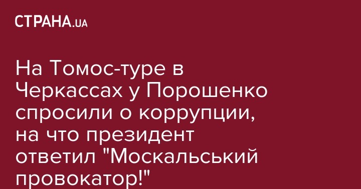 "Петр Алексеевич, а когда вы будете бороться  коррупцией?" - спросил  местный житель по-русски. Он отметил, что он представитель местной общественной организации. Порошенко, помолчав, заявил, обращаясь к местным жителям: "Видите, прислали человека, который даже украинский язык не знает. Москальские провокаторы даже тут пытаются нас расколоть. Молимся за Украину, за единую церковь, за единство украинского народа. И пусть они услышат: "Слава Украине! Это вам ответ, пан провокатор", - заявил он.