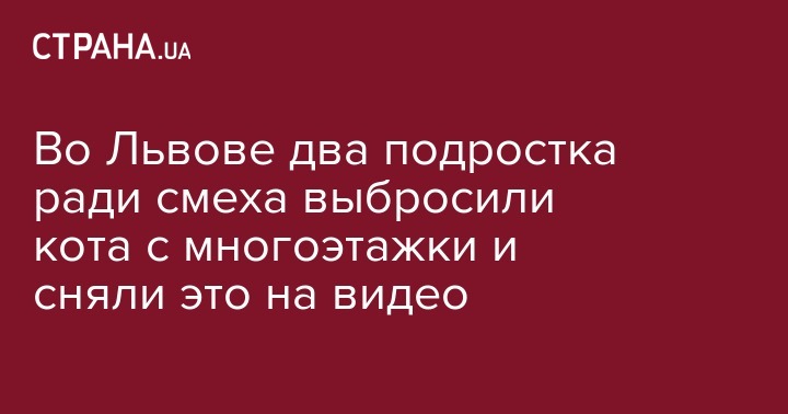 Во Львове двое парней с черными повязками на лицах выбросили кота из окна многоэтажки, сняли процесс на видео и выложили запись в сети. Видео издевательств с котом опубликовано Telegram-каналом группы Киев Оперативный. Отмечается, что живодеры пока не задержаны.