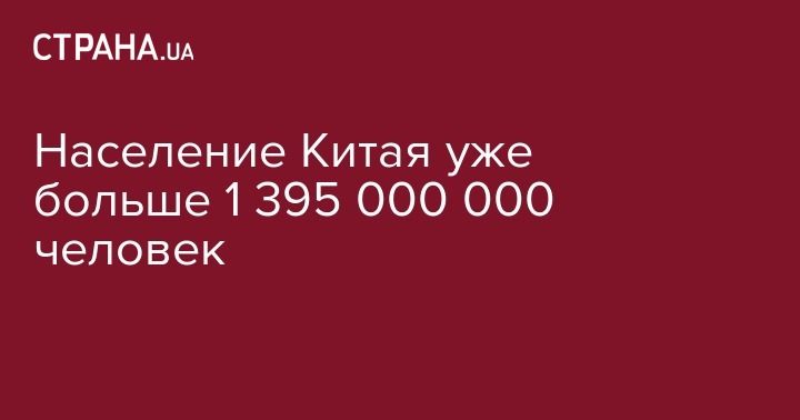 В 2018 году население Поднебесной увеличилось на 0,38%, превысив границу в 1 395 000 000 человек. Об этом сообщает Государственное статистическое управление КНР (ГСУ), как передает ТАСС.