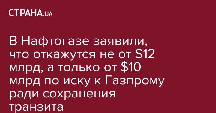 В Нафтогазе заявили, что откажутся не от $12 млрд, а только от $10 млрд по иску к Газпрому ради сохранения транзита