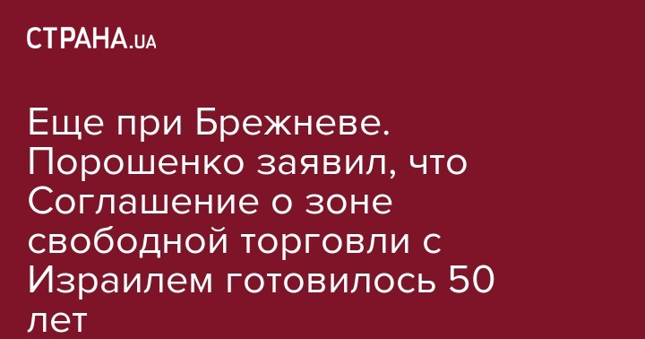 Соглашение о зоне свободной торговли, подписанное сегодня в Иерусалиме, готовилось в течение 50 лет. Об этом сегодня заявил президент Украины Петр Порошенко перед церемонией подписания документа, пишет УП.