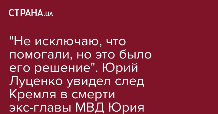 "Мой вывод таков. Он самостоятельно пришел к смерти. Не исключаю, что ему помогали, но это было его решение. Его подтолкнула к этому жизнь. Когда пришла повестка в прокуратуру, он был в шоке, он был личностью, которая не представляла себя не на свободе", - сказал Луценко.