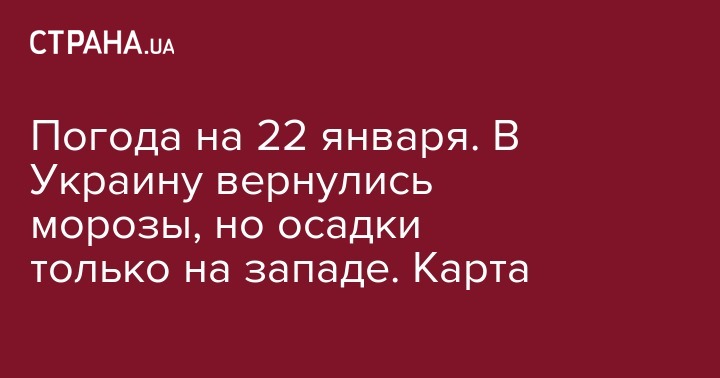 Погода на 22 января. В Украину вернулись морозы, но осадки только на западе. Карта