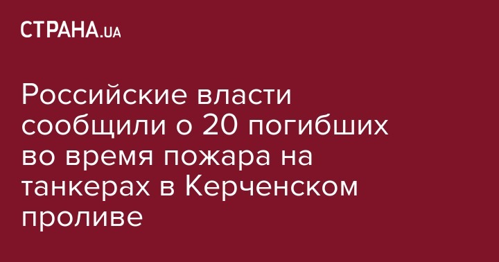 В результате пожара на двух суднах в Керченской проливе погибли 20 человек. Об этом сообщает агентство AFP.