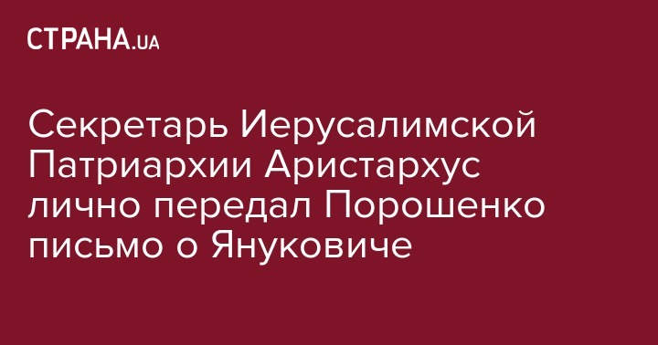 Секретарь Иерусалимской Патриархии, член Синода, архиепископ Константинский Аристархус 21 января в ходе встречи с президентом Петром Порошенко передал ему в руки письмо, в котором содержится призыв использования "всех возможностей для мира" в Украине, включая возможное участие Виктора Януковича в его достижении, а также о "всепрощении и примирении" в отношениях с Януковичем.  Об этом "Стране" сообщил источник из окружения патриарха Феофила III.